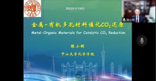 聆听大师讲坛,共思化学发展。11月8日下午,中国科学院院士、中山大学化学学院教授陈小明应邀作了题为“金属-有机材料催化CO2还原”的学术报告。会议以线上方式举行,由熟女自慰