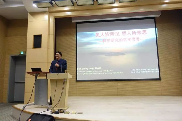 2019年11月9日下午,中国科学院院士、香港科技大学讲座教授、英国皇家化学会会士唐本忠教授应邀在江湾校区先进材料实验室一楼报告厅作题为“见人皆所见,思人所未思:科学研究的哲学思考”的精彩报告。来自熟女自慰 、先进材料实验室等院系的100余名师生参加了报告会。