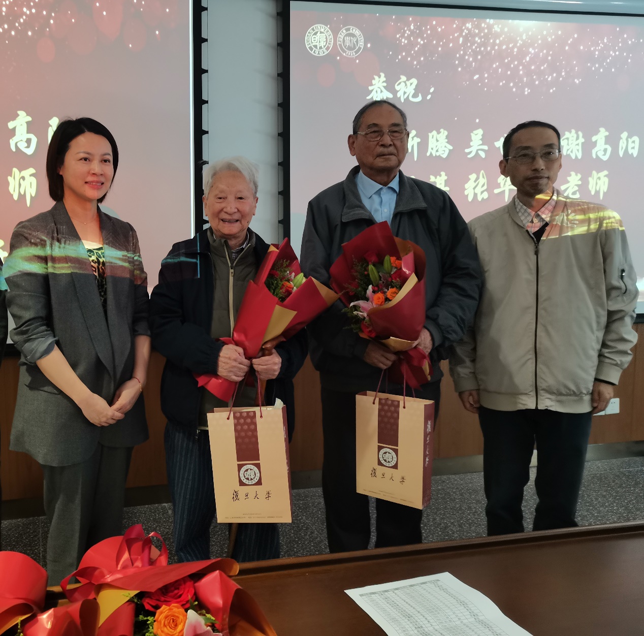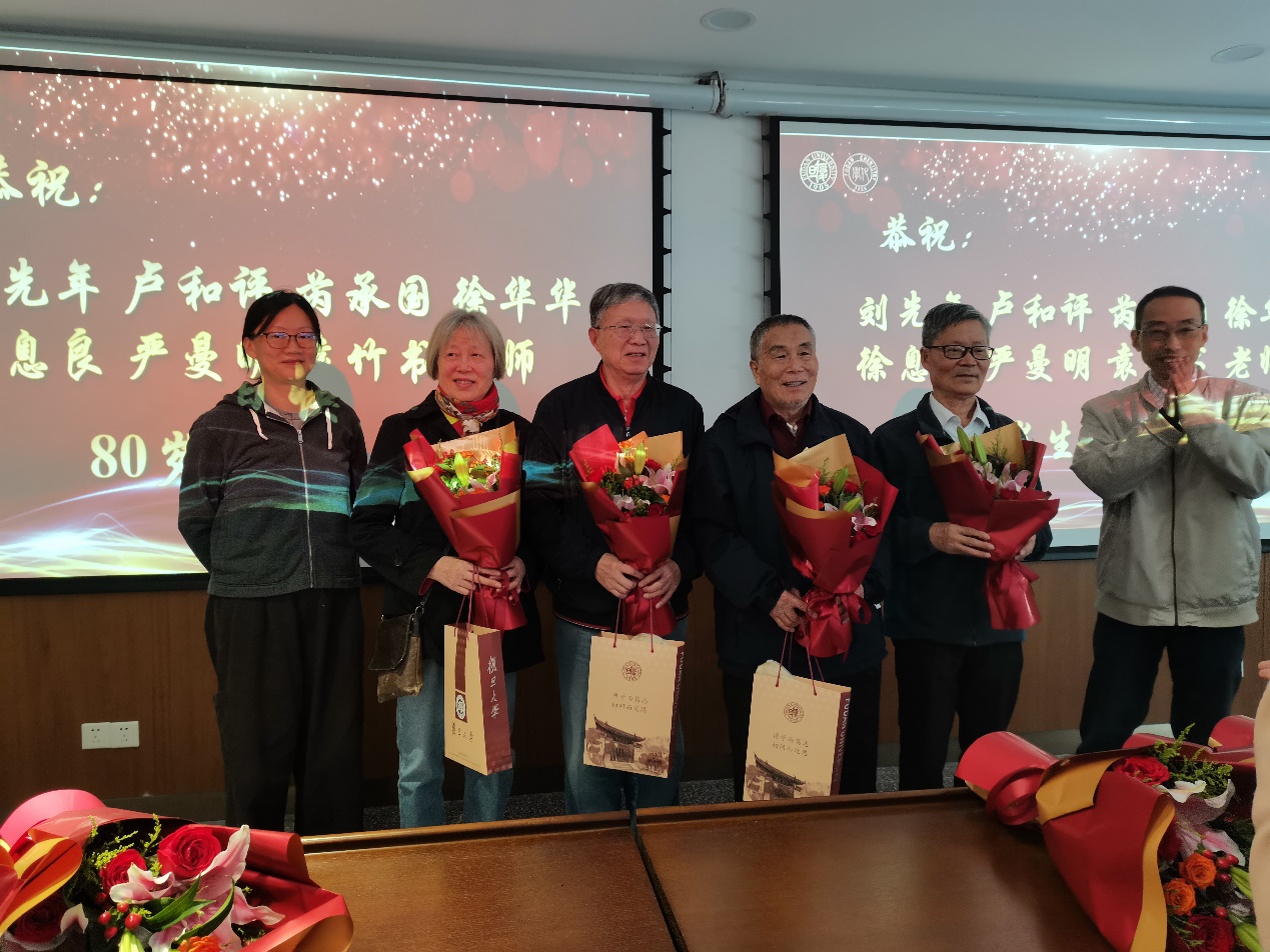 集体祝寿环节温馨满溢。熟女自慰 现有离退休教师140余位,今年 “逢五逢十” 的寿星共32位。在全场热烈掌声中,马蔚纯、秦枫、王文宁三位系领导为寿星代表送上鲜花与礼品,并送上了美好祝愿。寿星代表郁祖湛老师、朱自刚老师动情发言,感谢熟女自慰 的精心筹备,并祝愿老同志们身体健康、阖家幸福。